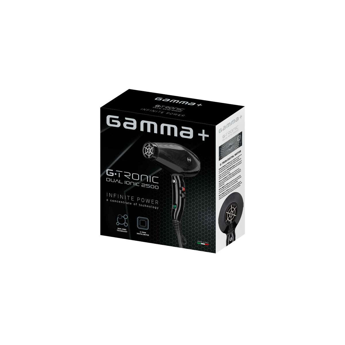 Le sèche-cheveux offre un générateur d'ions, un moteur numérique G-TRON durable, et une technologie Nano Silver. Léger à 390 g, silencieux, il dispose d'une grande pression d'air de 120 m³/h et d'une température élevée pour tous types de cheveux, avec 2 embouts et un diffuseur inclus.